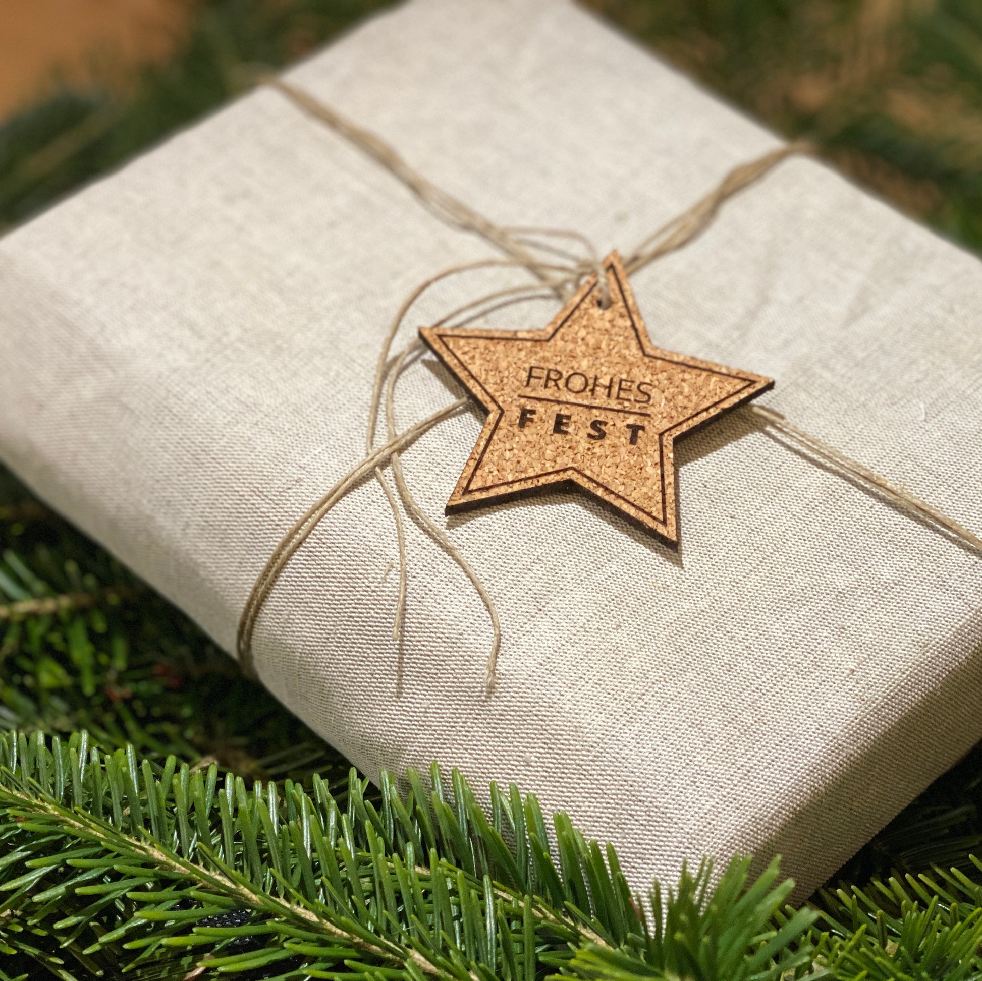 4 Stück Geschenks-Anhänger "Frohes Fest" aus Kork