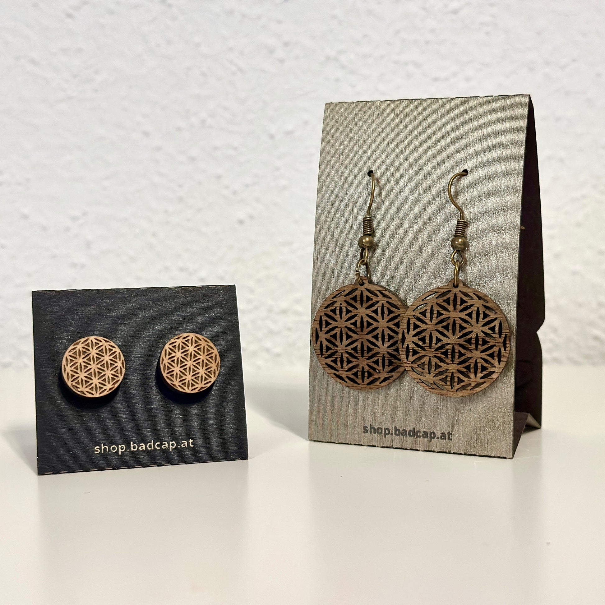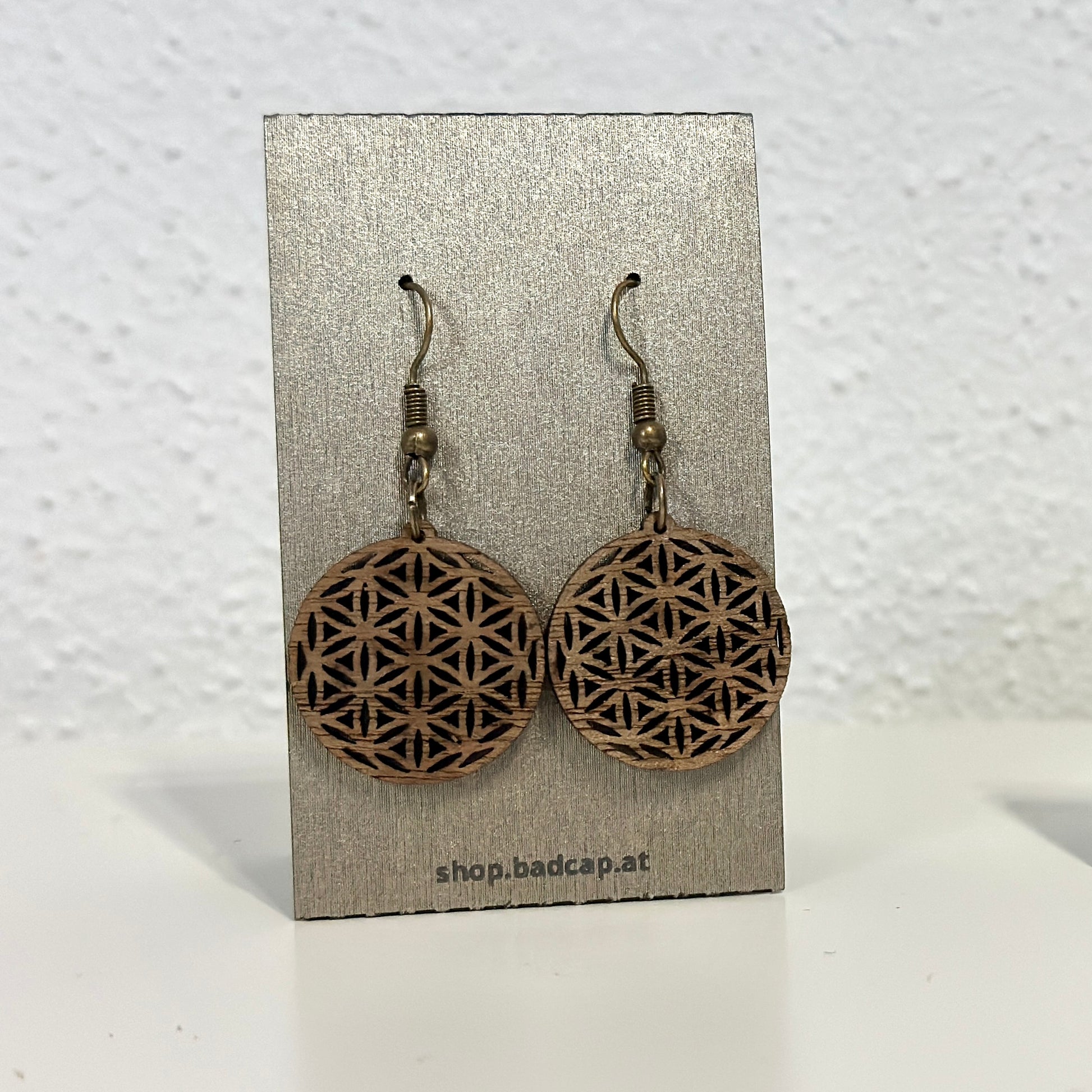 Die edlen Lebensblume Ohrringe sind filigran aus Holz gelasert, bitte vorsichtig damit umgehen.