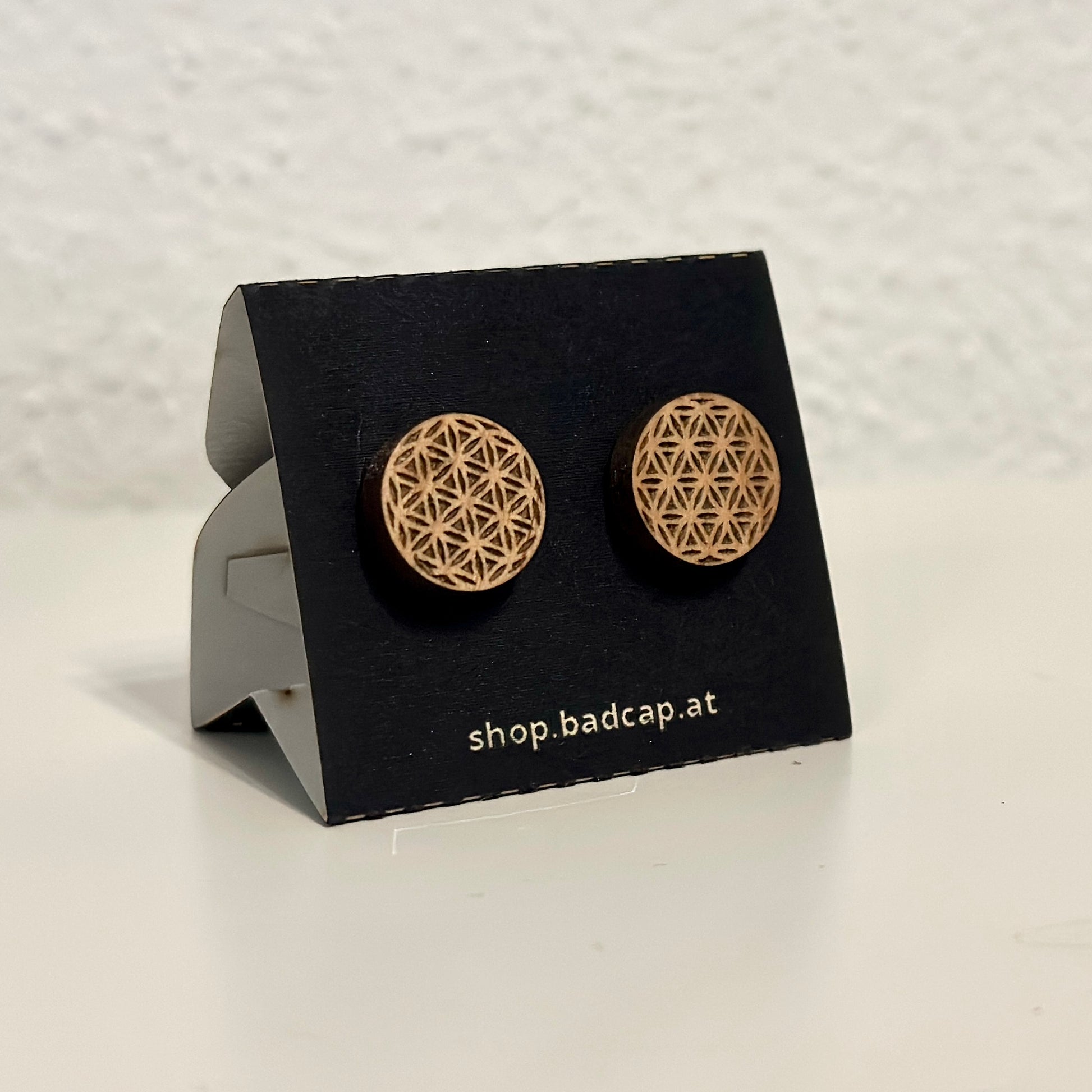 Gravierte Holz Lebensblume Ohrstecker aus Erle